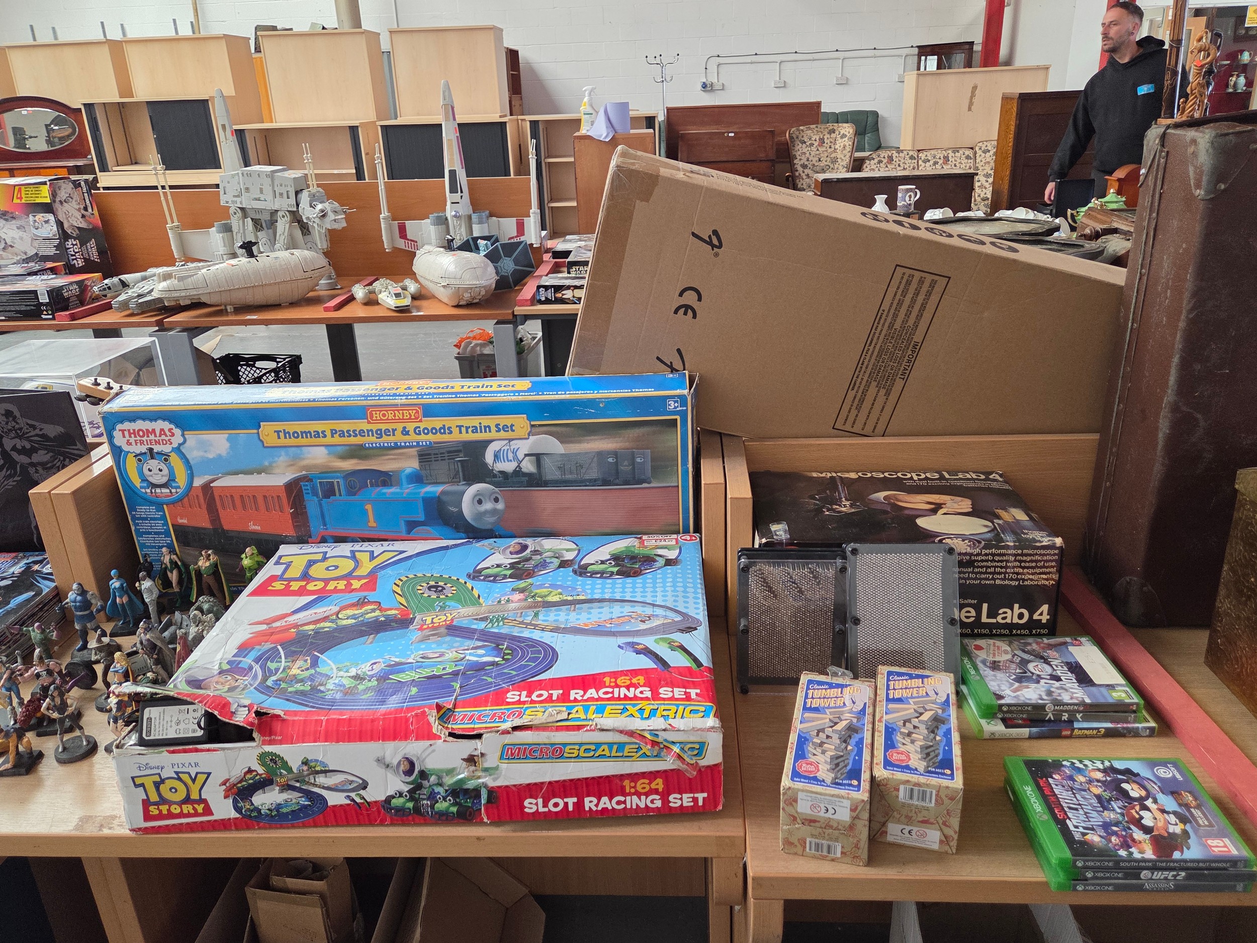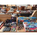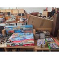 A boxed Hornby Thomas the Tank train set, micro Scalextric Toy Story slot racing set with DC comics, figures etc