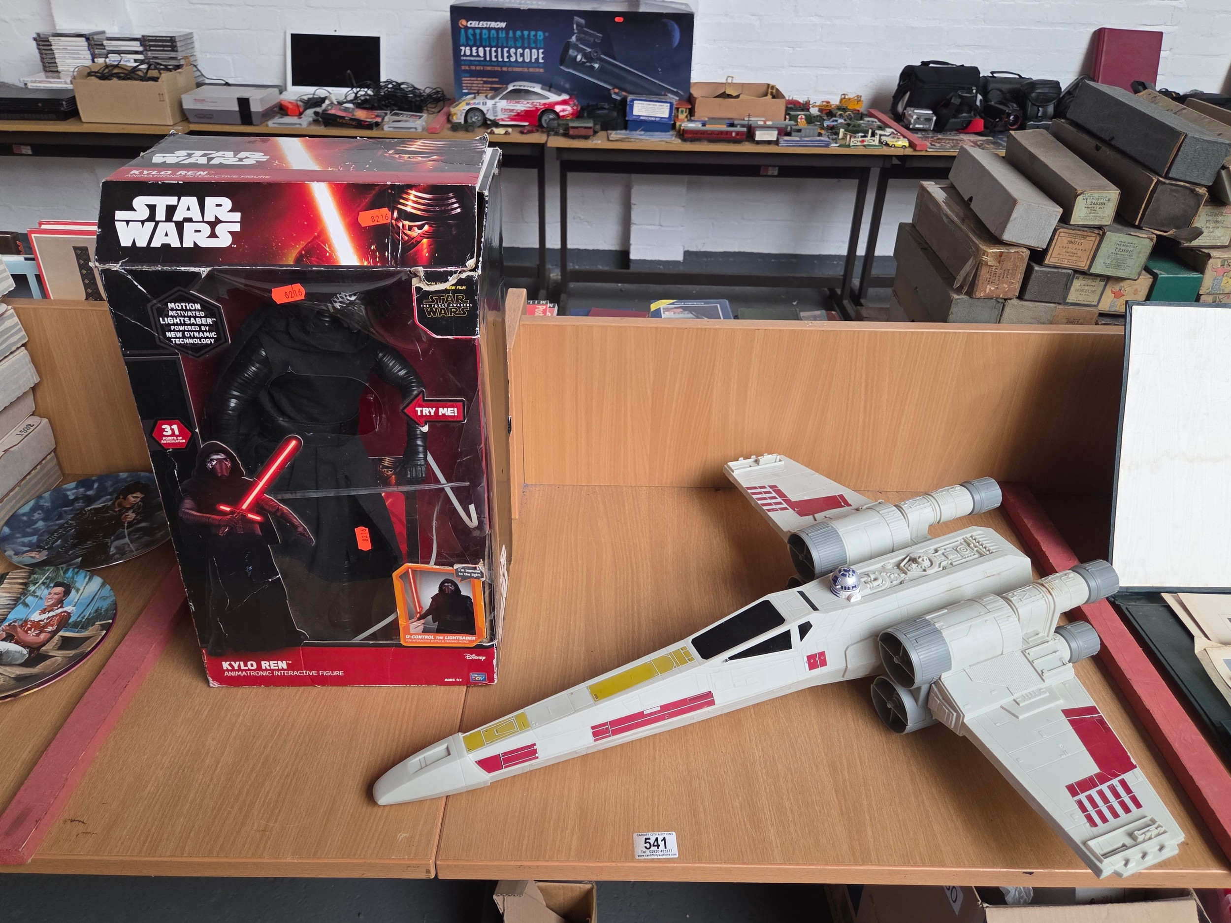 A boxed Star Wars Kyloren animatronic interactive figure with a X-Wing fighter model aircraft