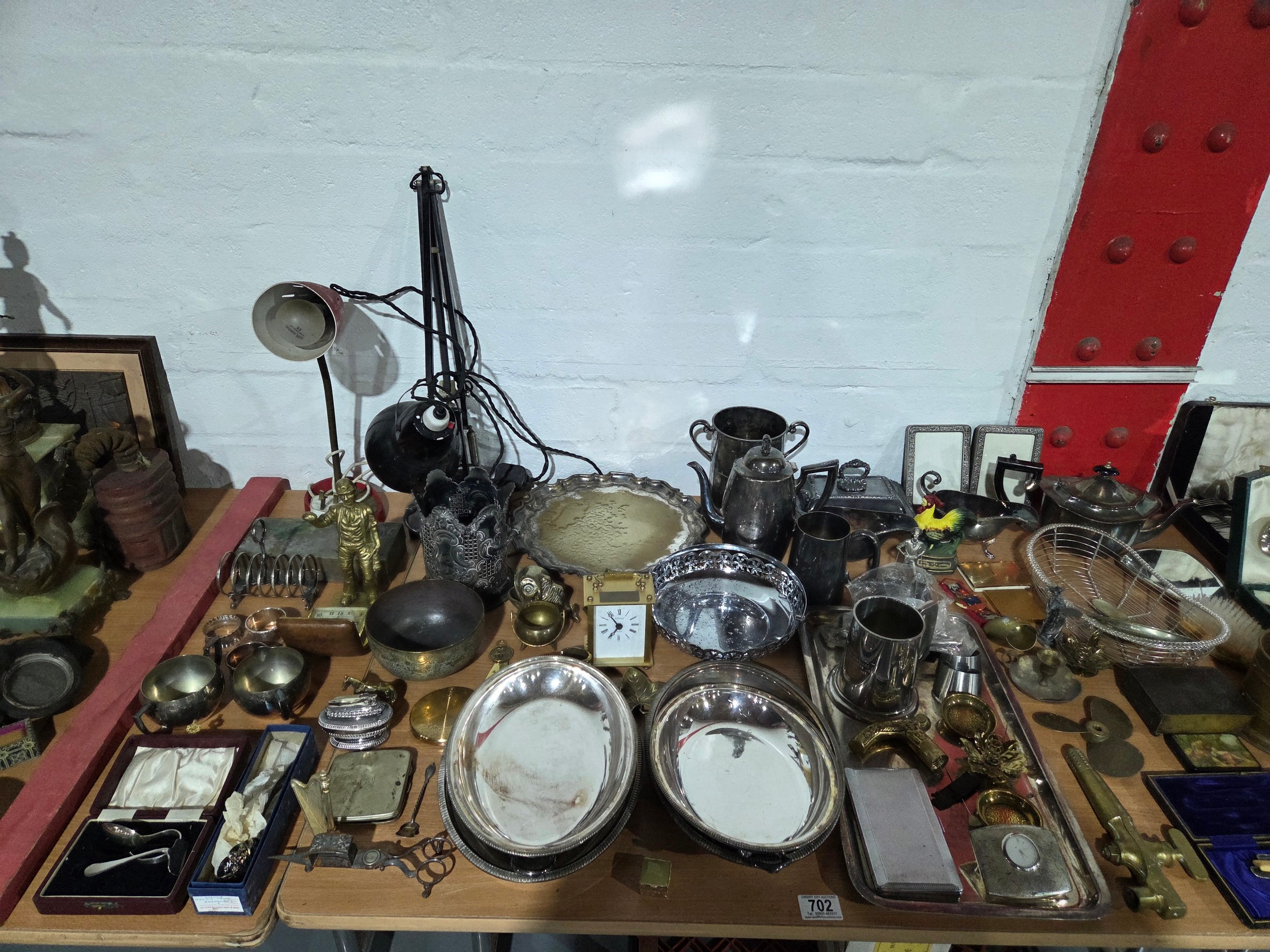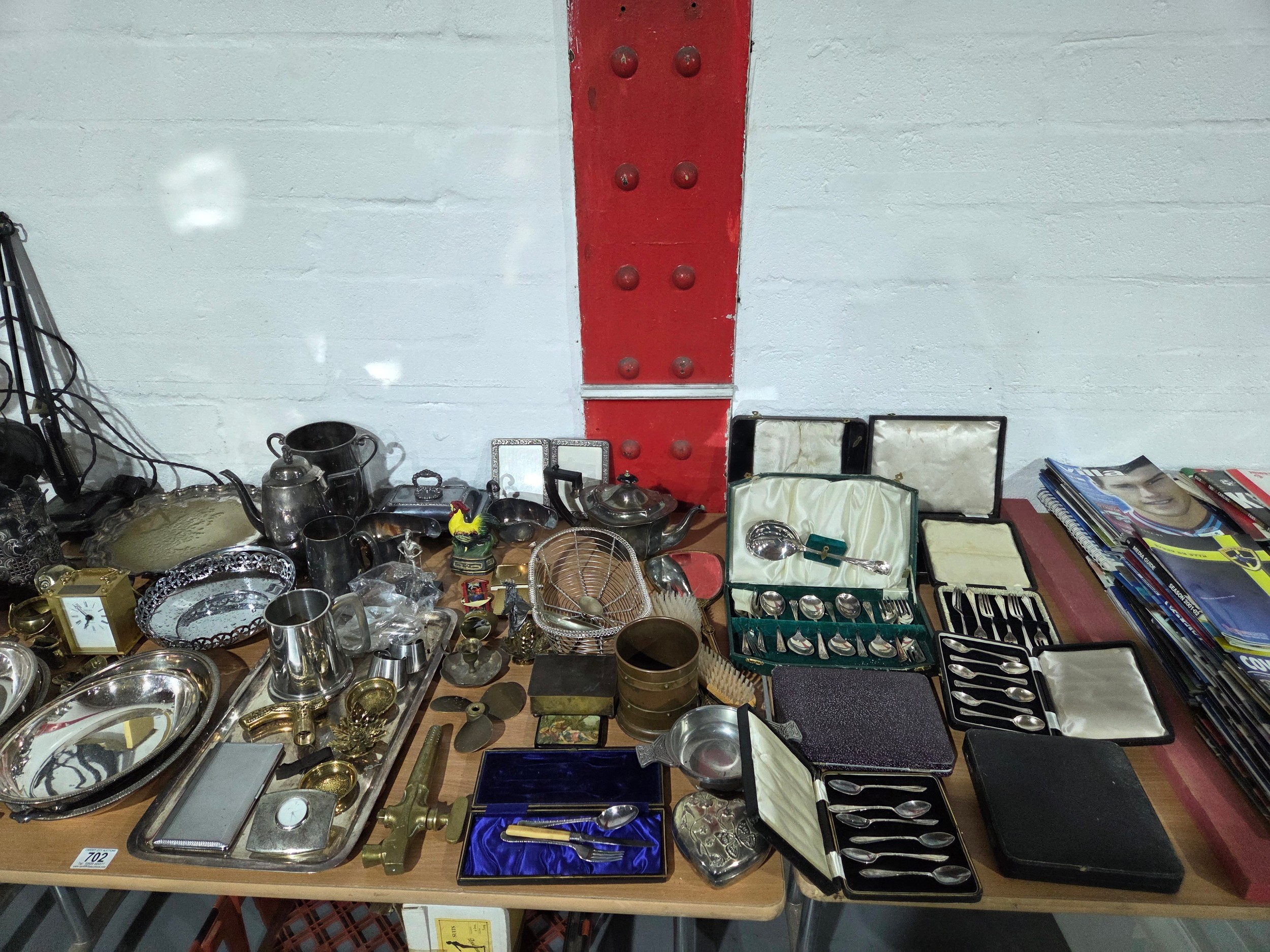 Metalware to include cased cutlery sets, Anglepoise lamps, silver plated serving trays, etc