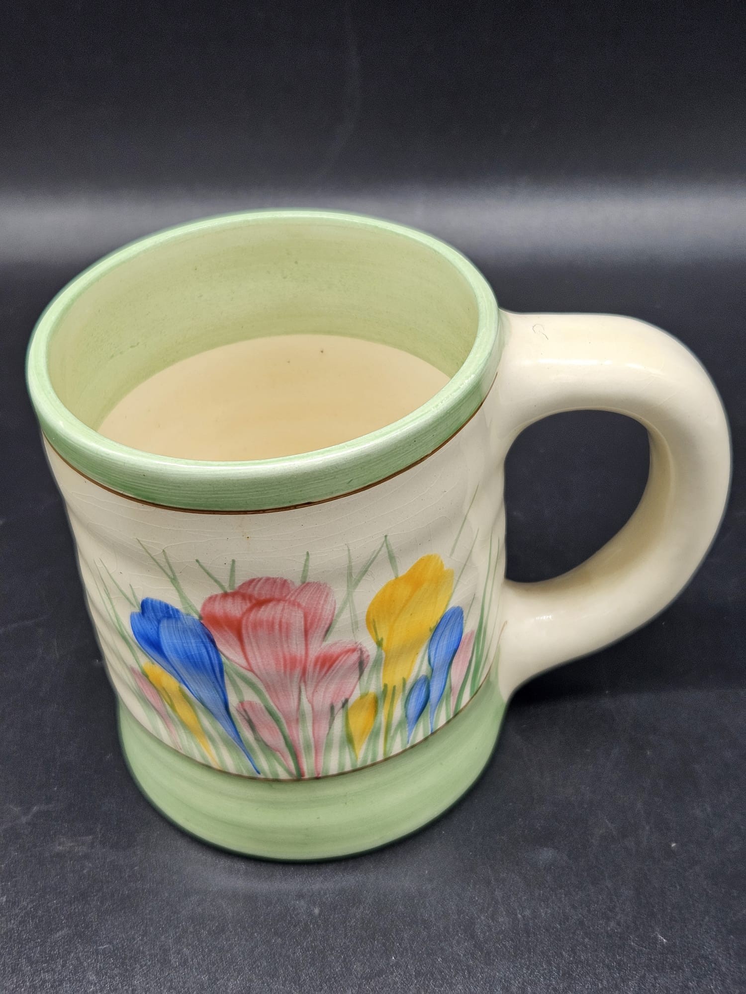 A Clarice Cliff Royal Stafford - Spring "Crocus" mug - good condition with usual crazing