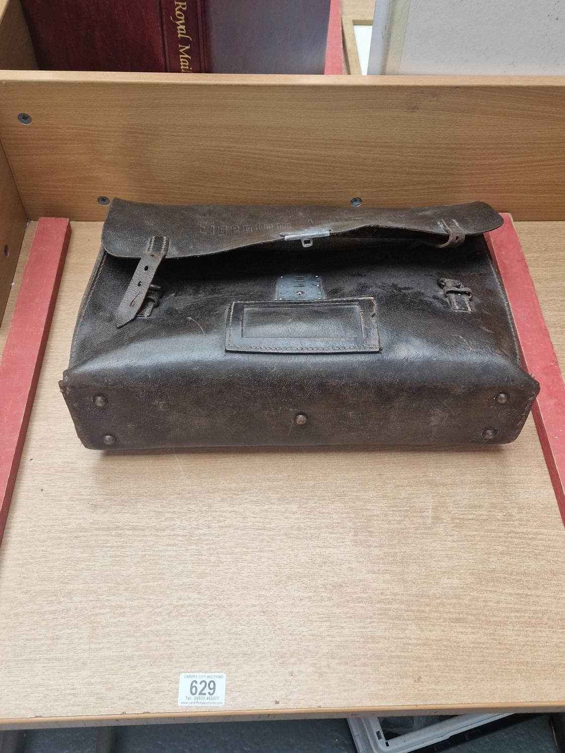 An original German World War II Eigentum Luftwaffe leather briefcase - Eigentum Luftwaffe marked to the outside and Nur Fur Geldtransport on the front