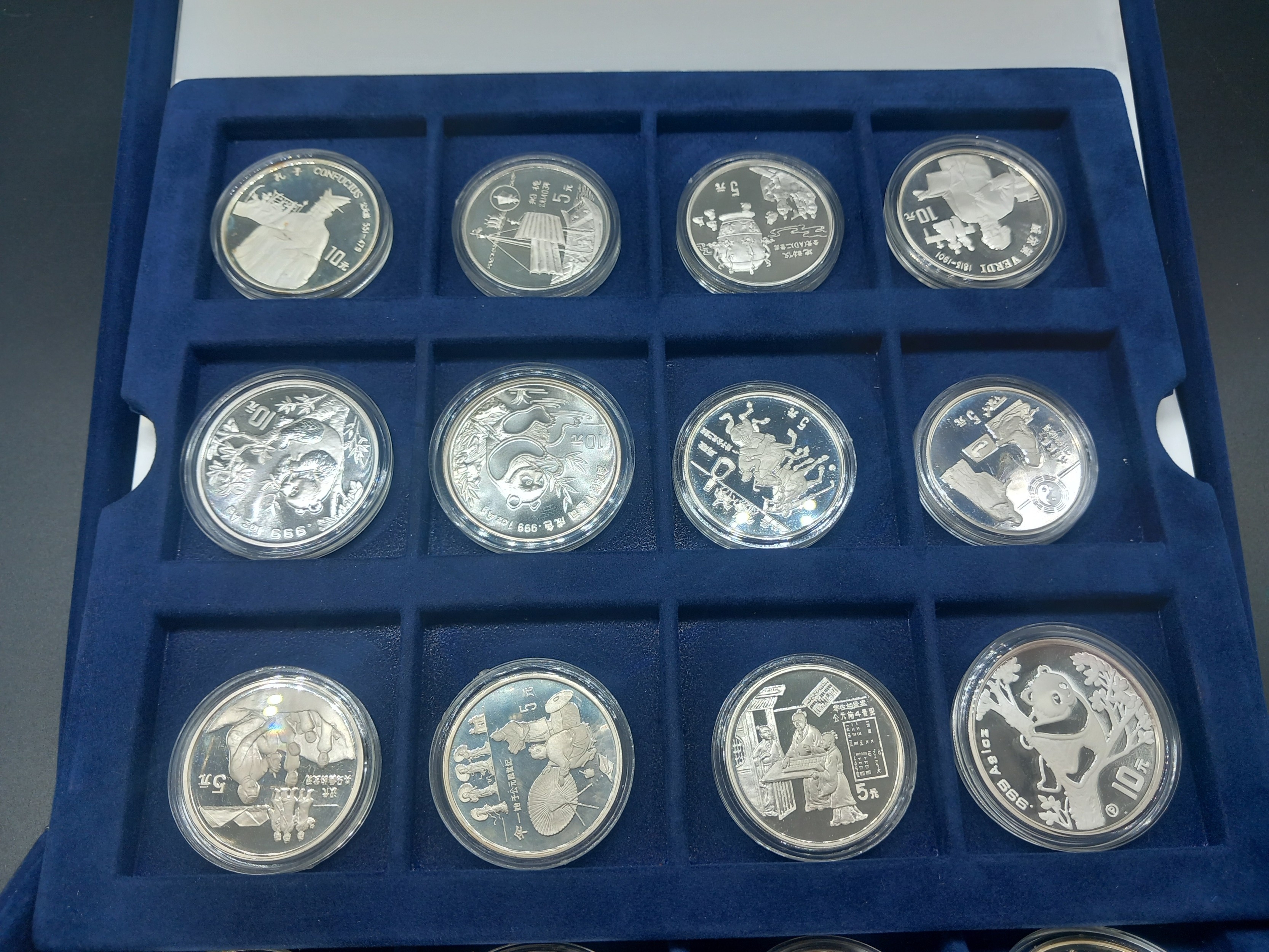 A boxed collection of seventeen solid silver "Official silver coins of China" - 900/1000 silver with each coin weighing over 20 grams - all with certificates