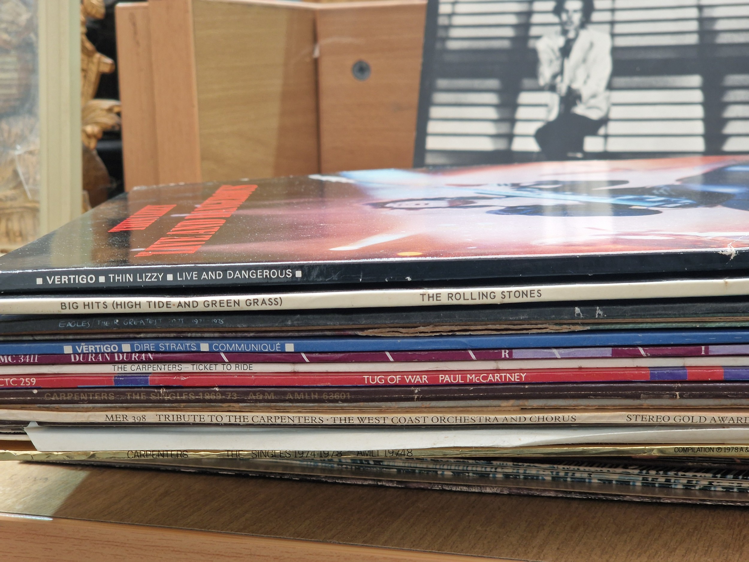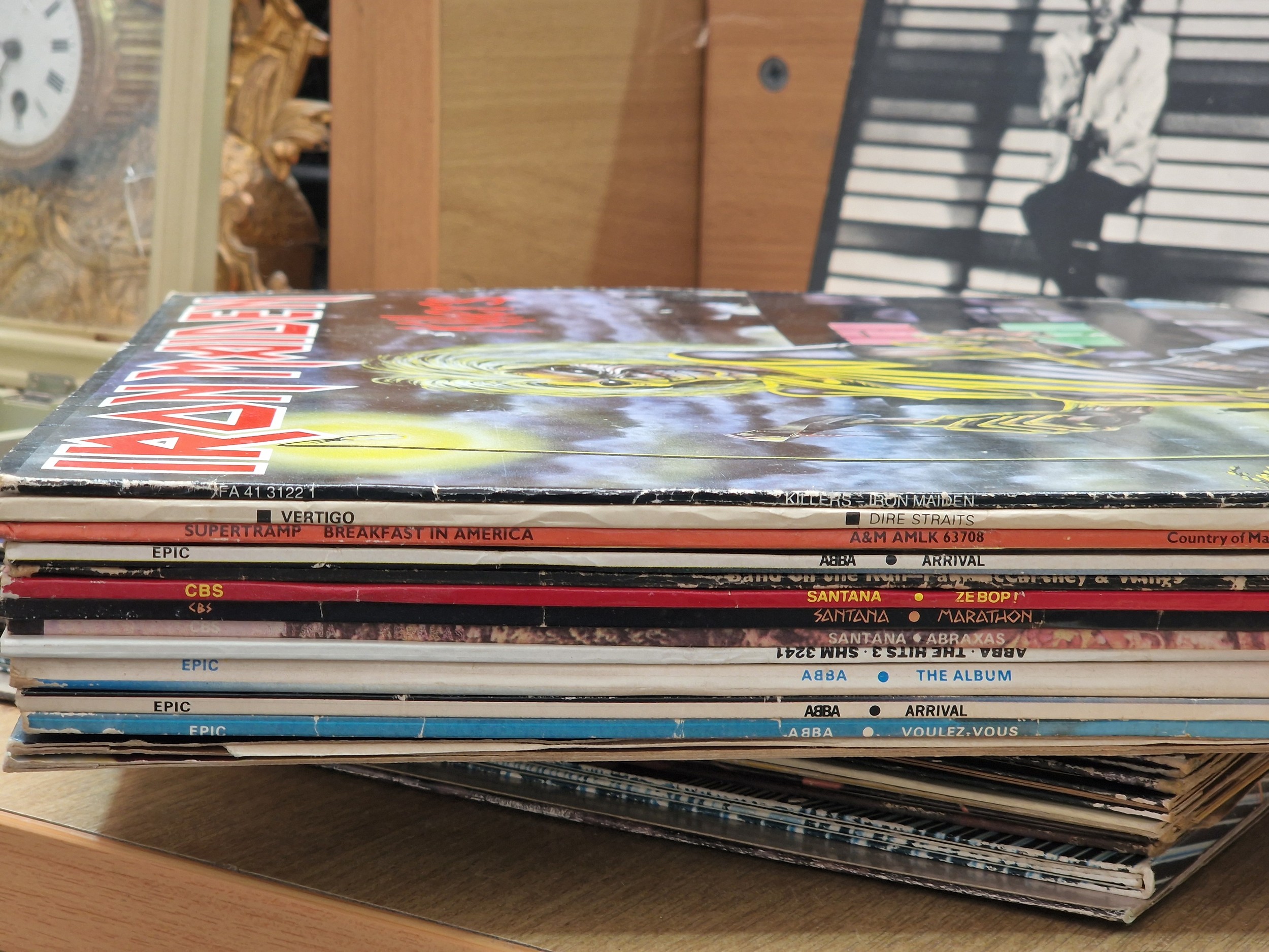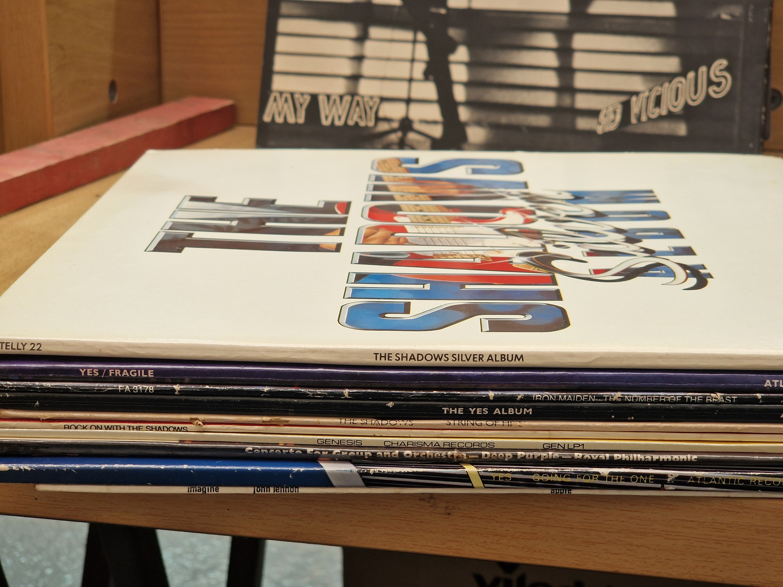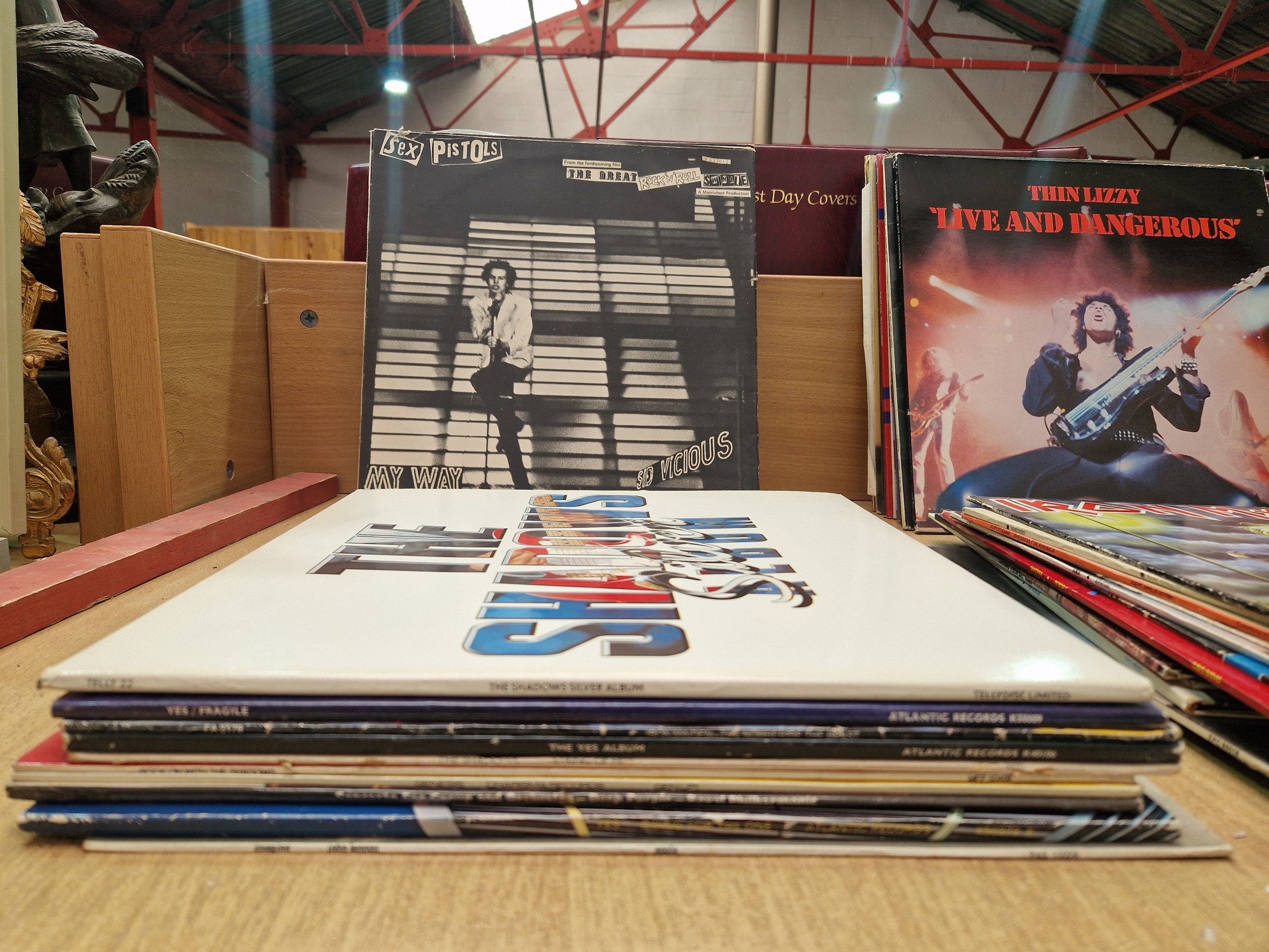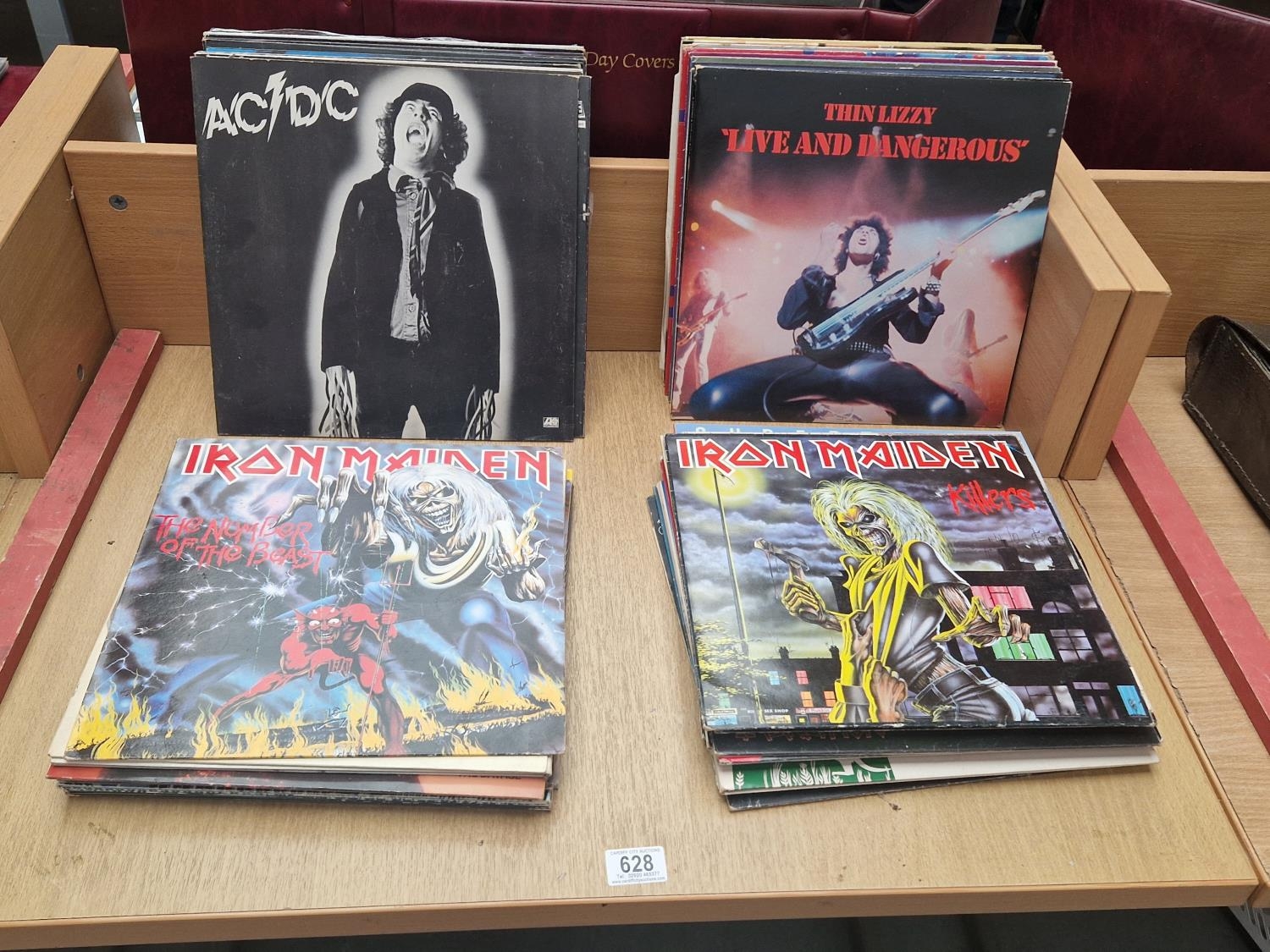 A selection of vinyl records to include Iron Maiden, Metallica, Thin Lizzy, ACDC, Sex Pistols etc.