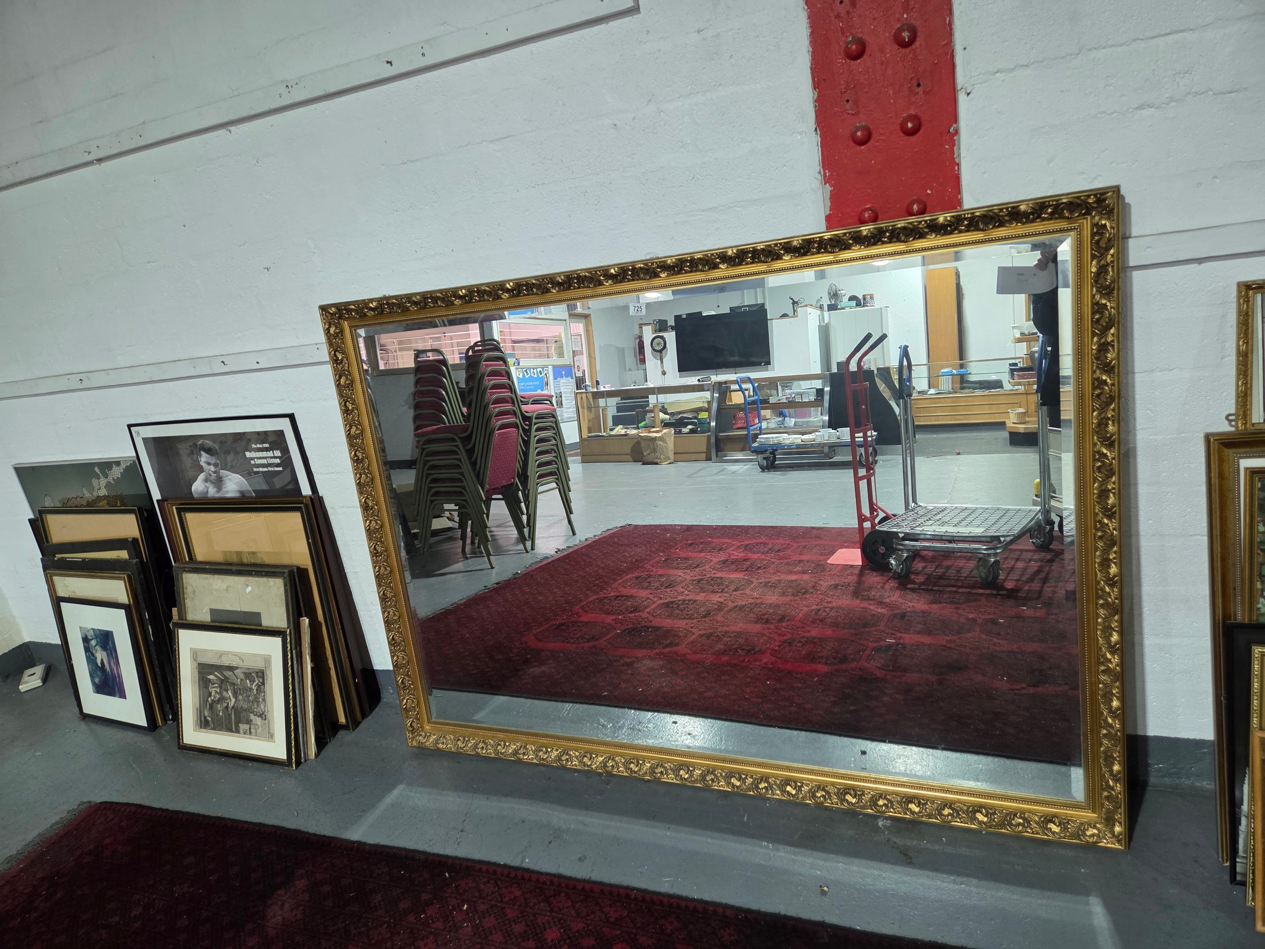 A large gold gilt framed bevel edged mirror H130cm by W184cm