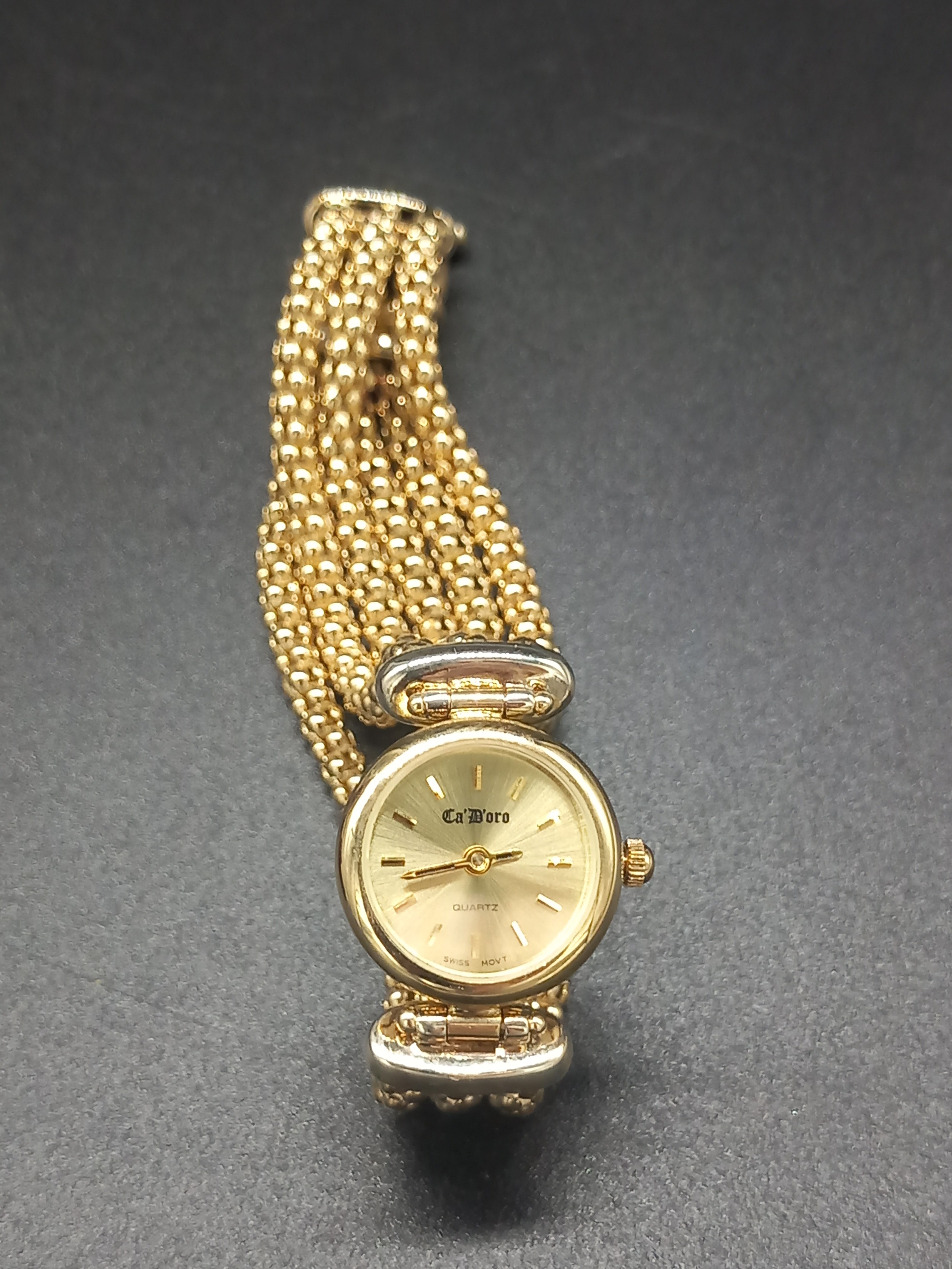 A 9 carat gold ladies Ca D'oro watch - watch case and strap 9 carat gold - Swiss Quartz movement - working but not time tested - weight including movement - 27 grams