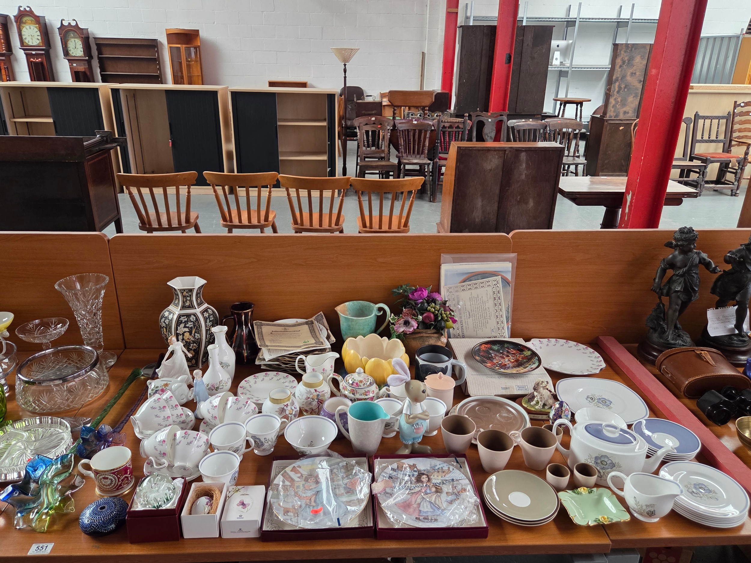 Decorative china and glassware to include Royal Coppenhagen, Clarice Cliff, paperweights etc