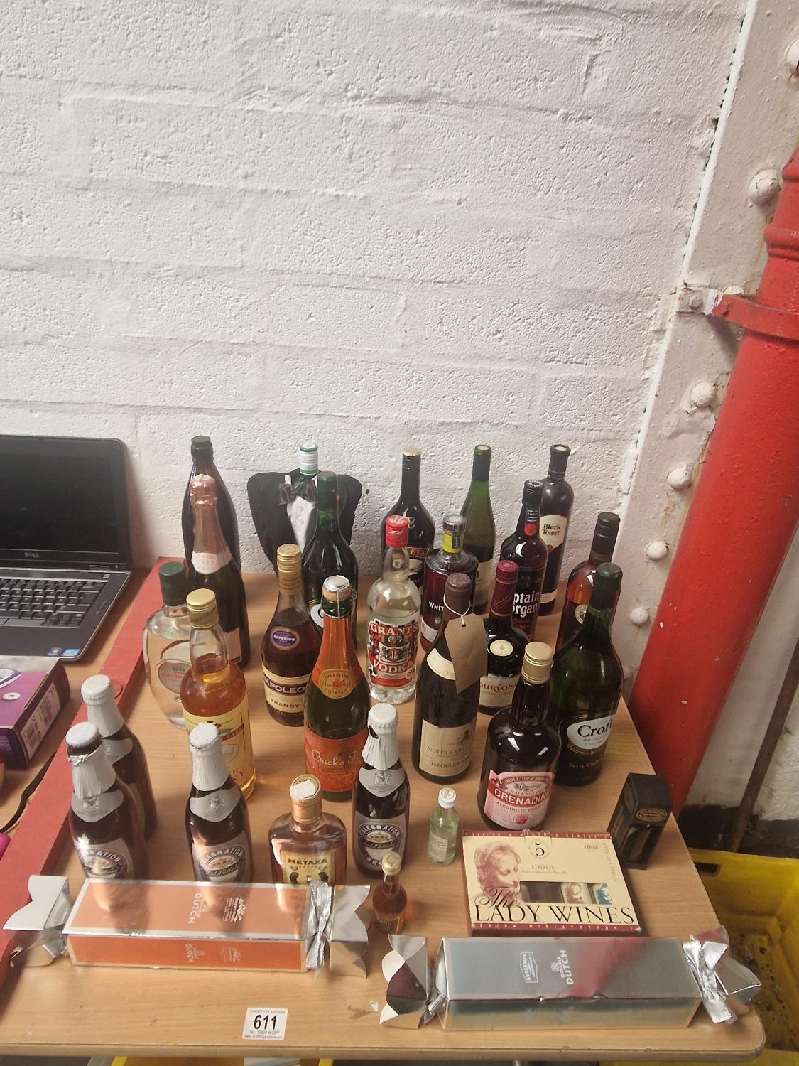 Alcohol to include Grants vodka, Napoleon brandy, Whitley Neill gin, Captain Morgan rum etc.