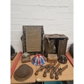 A military carrying case with original petrol canisters, helmets, four decorative pistols etc.