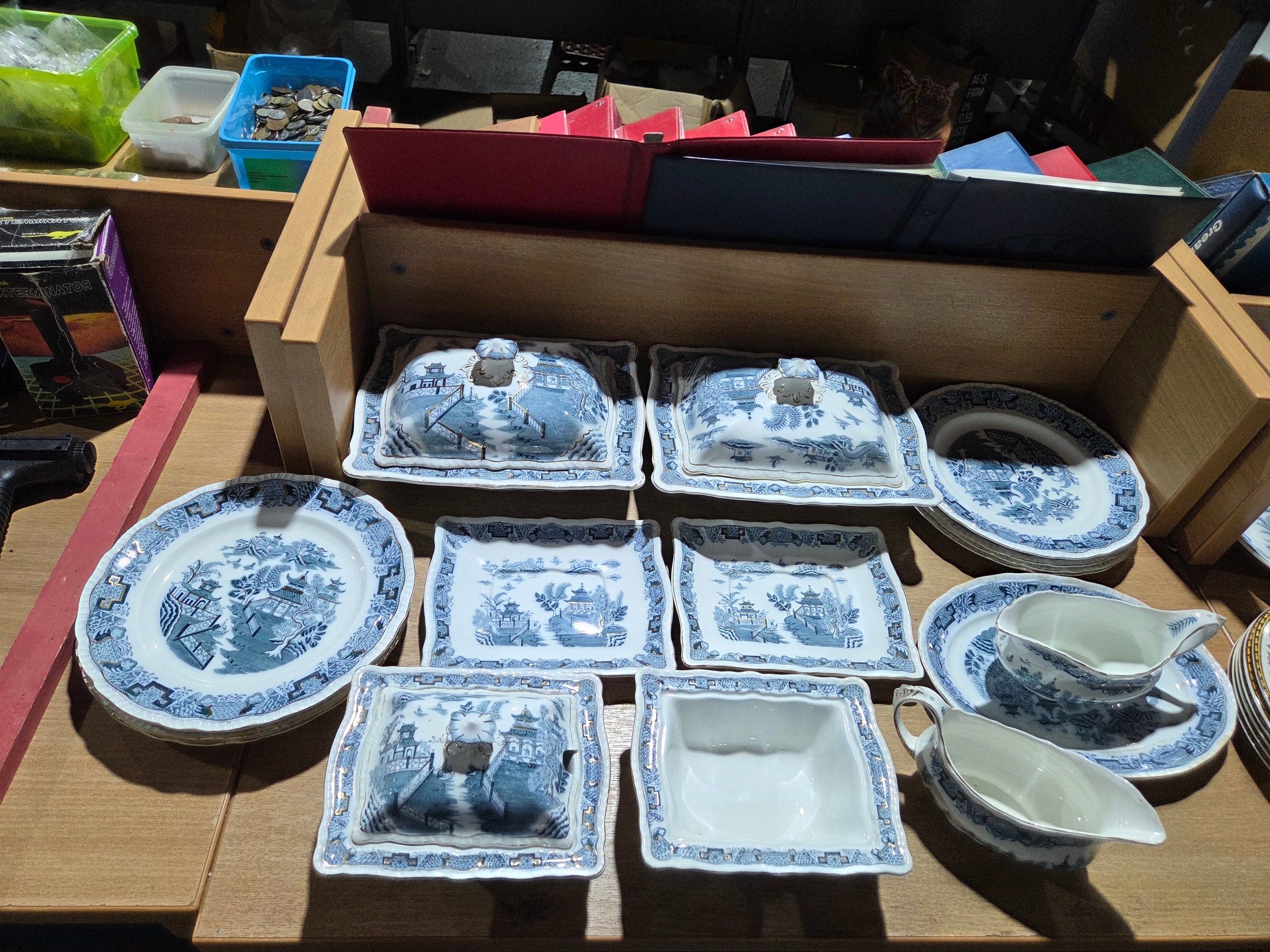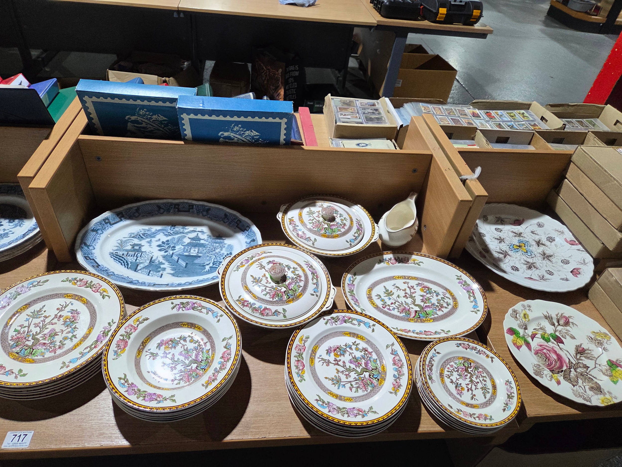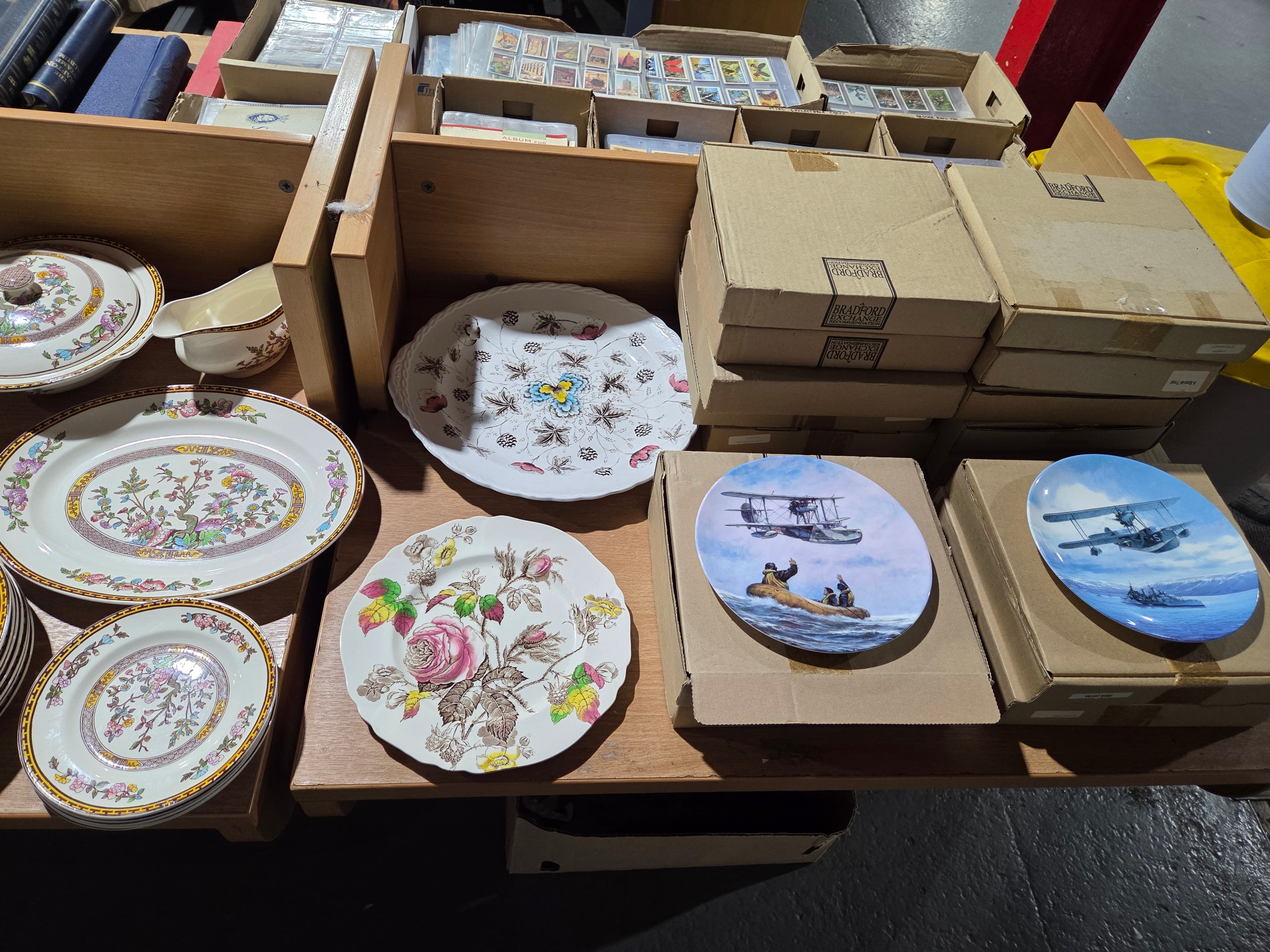 A Bristol Alkalon china Mandarin pattern part dinner service, Washington pottery Indian Tree part dinner service with Bradford Exchange collectable plates