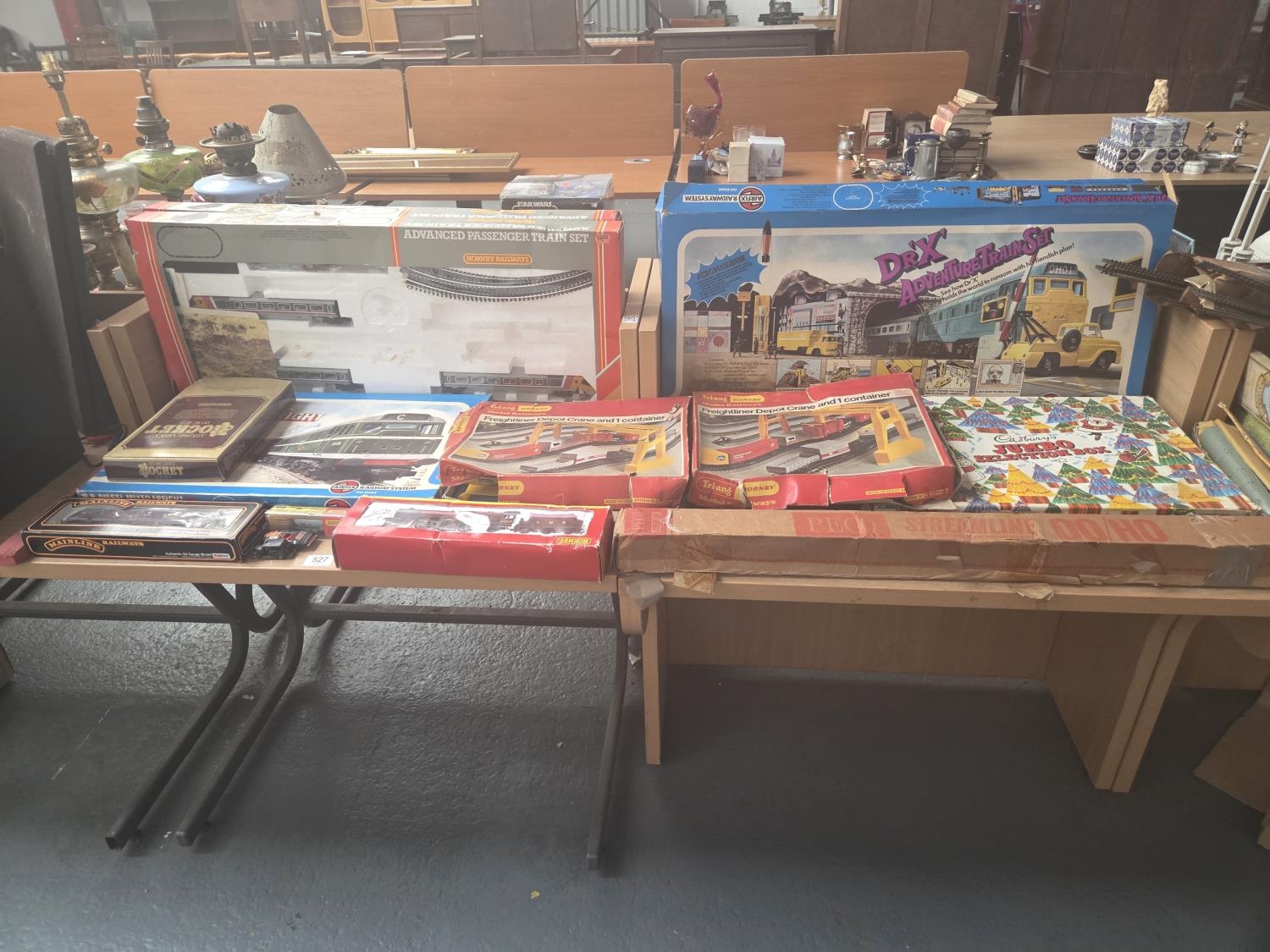 Boxed Triang and Hornby railway sets, (some missing), complete boxed Airfix adventure train set together with track, carriages etc