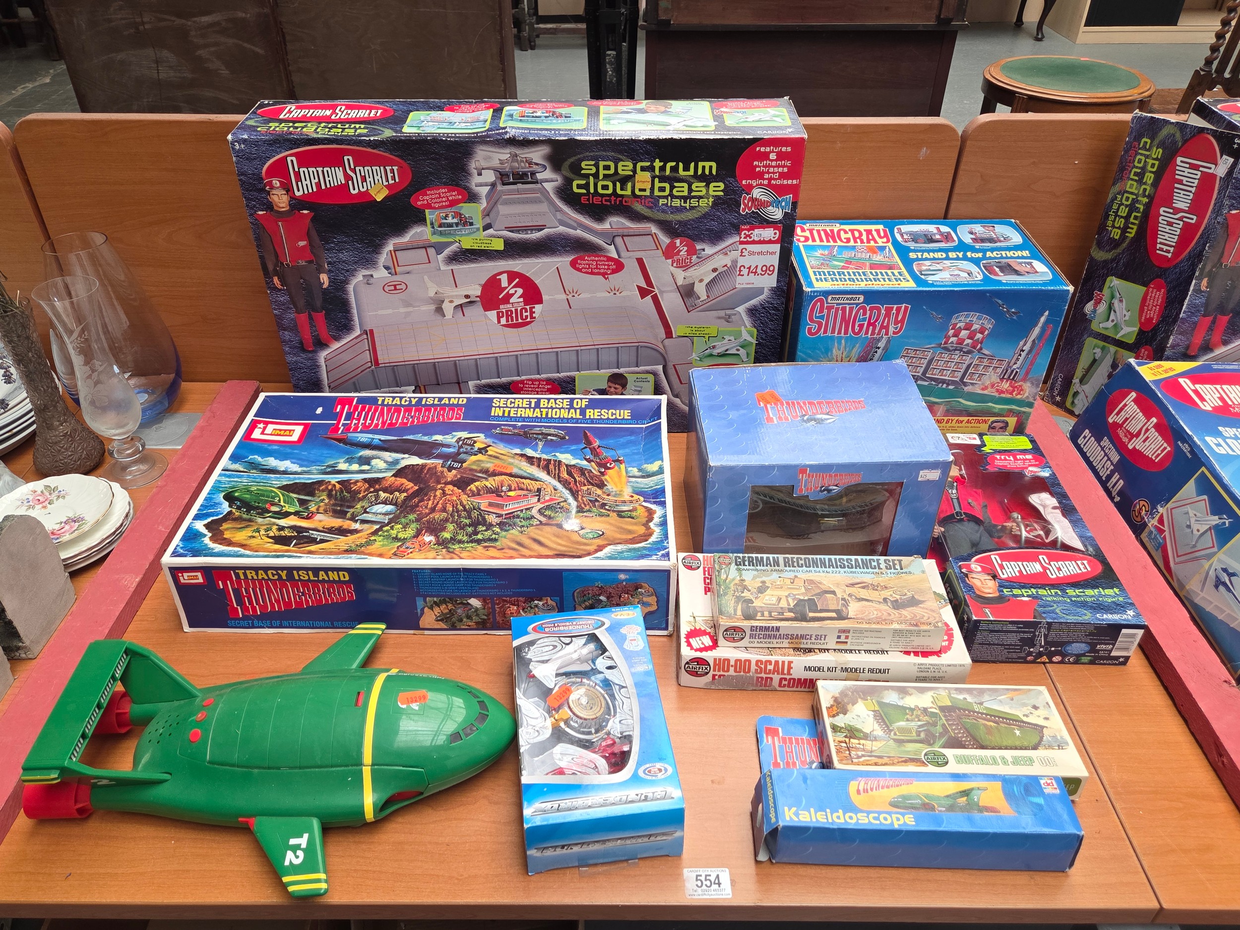 Boxed Thunderbirds and Captain Scarlett items - Marineville headquarters, secret base of International rescue, Thunderbirds 2, Spectrum Cloudbase etc