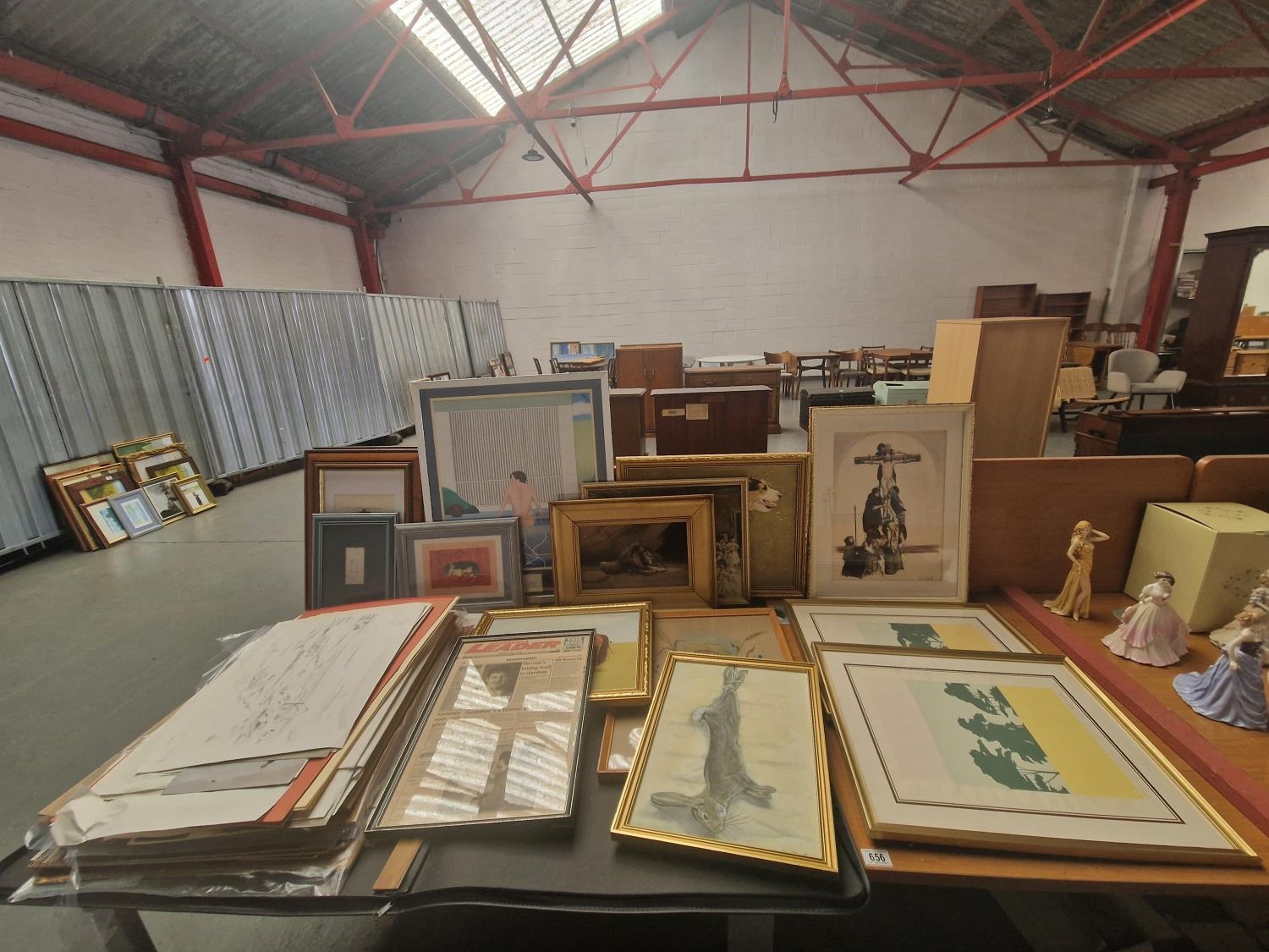 A portfolio containing various sketches and framed artwork m...