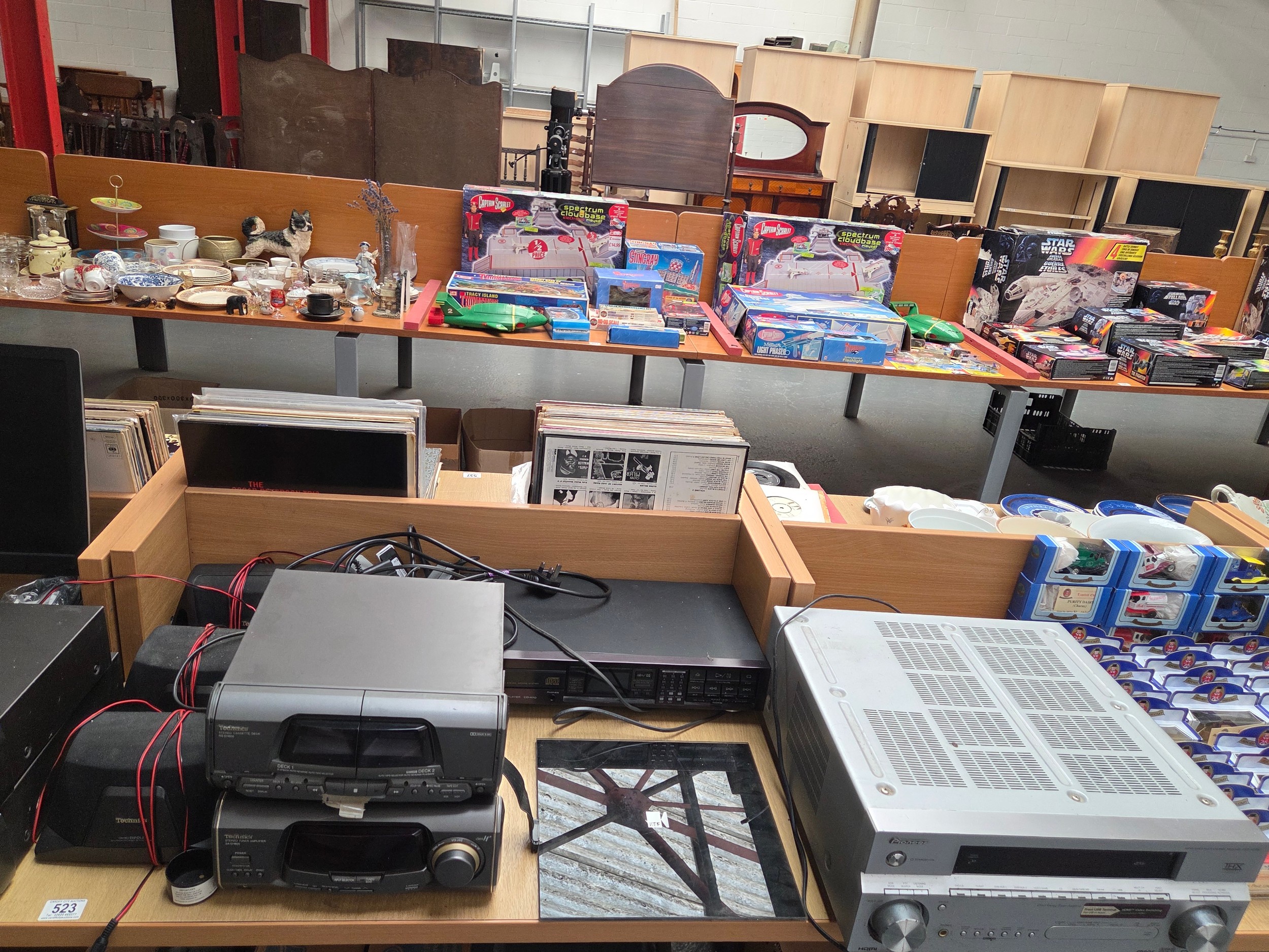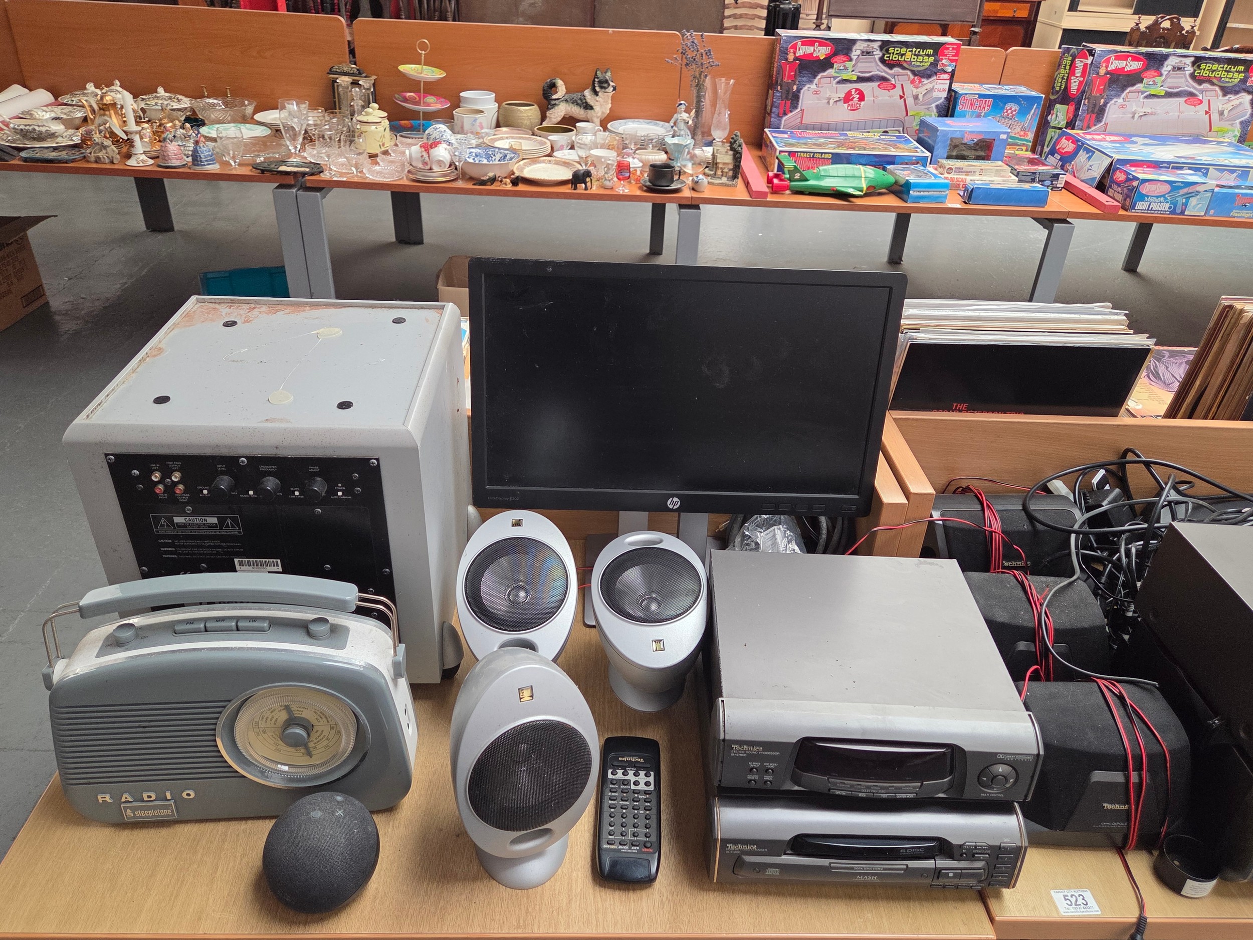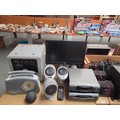 A Technics computer, amplifier, cassette deck with Technics speakers, Keff speakers, Keff sub woofer etc
